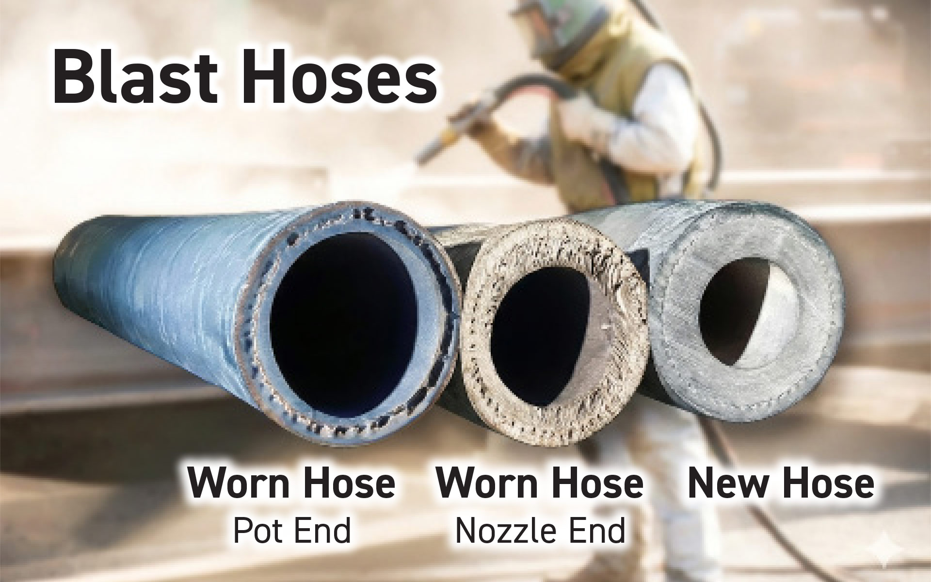 - Heavy-duty 4-ply blast hose for abrasive blasting applications