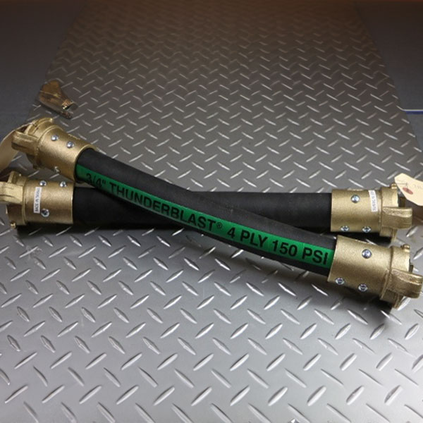 Our 16-229 is the exact same as the Dustless Blasting 72634/007.Ā We used 17 inches of 3/4″ x 1-1/2″ 4-ply Thunderblast hose with two Q1 NECO brass hose couplings.